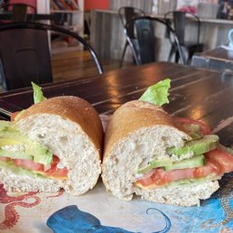 The ambiance was quiet and comfy. They had so much local art and books available for those that decide to dine in. I was looking for a spot with simple sandwiches and breakfast options so I'm really glad I stumbled upon Pink Forest. The service was fast and efficient, no issues whatsoever. The juice was okay, nothing crazy. The sandwich was delicious! I wish I woulda gotten it with cheese like the cashier asked. Probably coming back to try their pancakes if I'm in the area again.