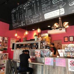 Indoor and outdoor seating is a available. A bit cramped and communal but that's part of its charm. Couples, groups, and singles- all can be found at this good vibe cafe. Prices are reasonable and service is friendly and efficient. WiFi is available. I've only had their cappuccino and brewed coffee and give them a four star rating. Has a very progressive, down to earth, friendly vibe. So far, my favorite coffee shop in the neighborhood.